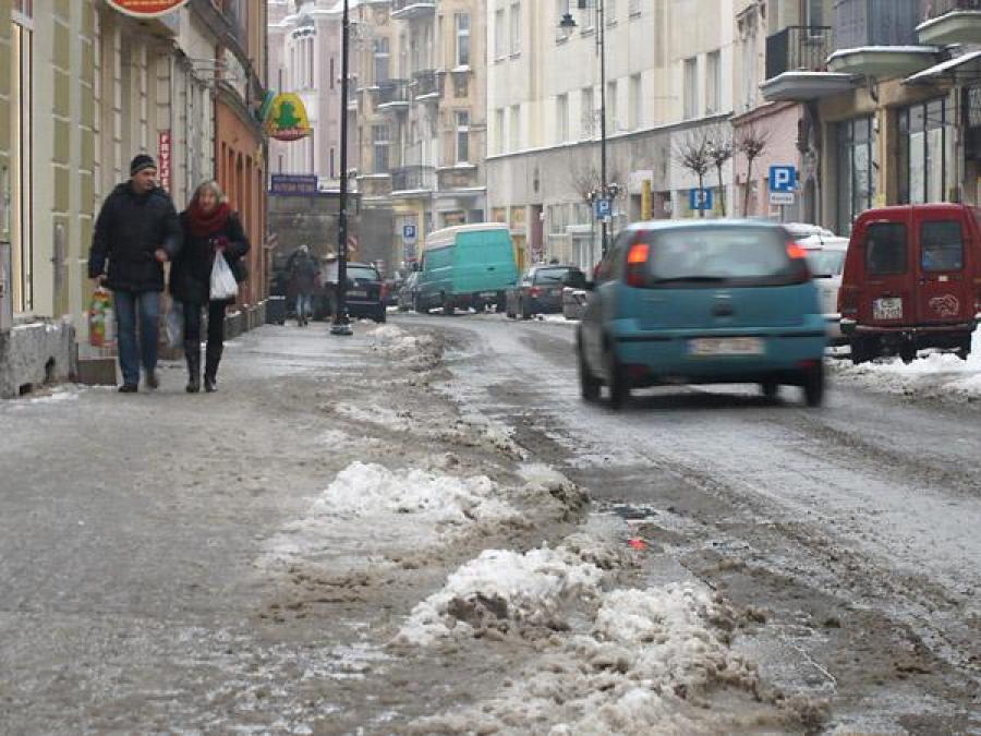 Przed wyruszeniem w drogę samochodem warto sprawdzić stan nawierzchni jezdni. Ostrożność zalecana jest też pieszym. Może być łatwo o wywrotkę na chodniku.
