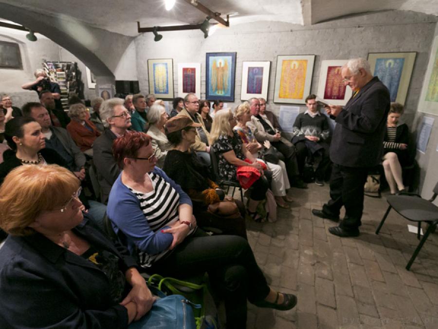 - Osiemnaście lat temu zacząłem realizację cyklu malarskiego ?Opiekunowie czasu?. Wszystkie dni roku miały zostać zaopatrzone w wizerunek-wyobrażenie swojego anioła – wspominał Jacek Soliński, otwierając czwartkowe spotkanie w galerii przy ul Chocimskiej. – Ten cykl udało mi się wreszcie zakończyć – oznajmił współgospodarz Galerii Autorskiej Jana Kaji i Jacka Solińskiego i dodał, że kolejne obrazy są niejako przyporządkowane. – Dedykowałem je różnym osobom, bliskim, przyjaciołom, znajomym, osobom dla mnie ważnym, żyjącym i nieżyjącym.