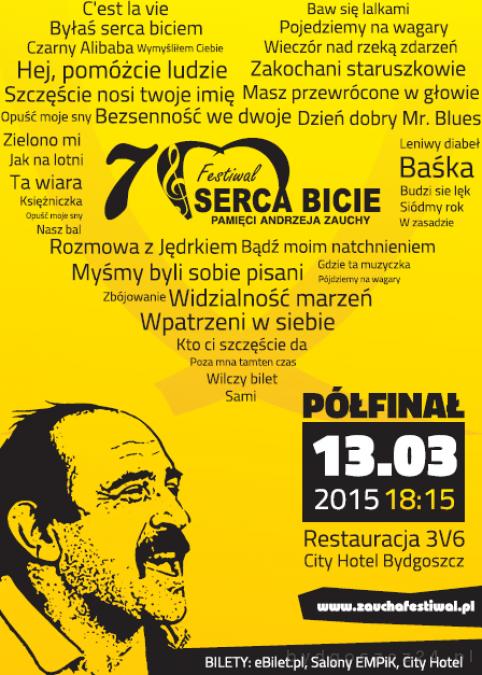 Półfinaliści konkursu festiwalu, którzy zjadą do Bydgoszczy z całej Polski, zaprezentują utwory Andrzeja Zauchy. Spośród nich wybrana zostanie przez jurorów szczęśliwa dziesiątka, która wystąpi 11 maja na scenie Opery Nova.