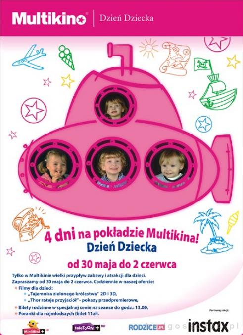 W Multikinie na dzieci czekają pokazy pełnej humoru animacji ?Tajemnica zielonego królestwa? w wersji 2D i 3D oraz przedpremierowo historia nastolatka, który wyrusza na wielką wyprawę przeciw złej królowej i armii gigantów, czyli ?Thor ratuje przyjaciół?. Ponadto 31 maja również przedpremierowo na ekrany kina zawita przygodowa animacja ?Tedi i poszukiwacze zaginionego miasta?.