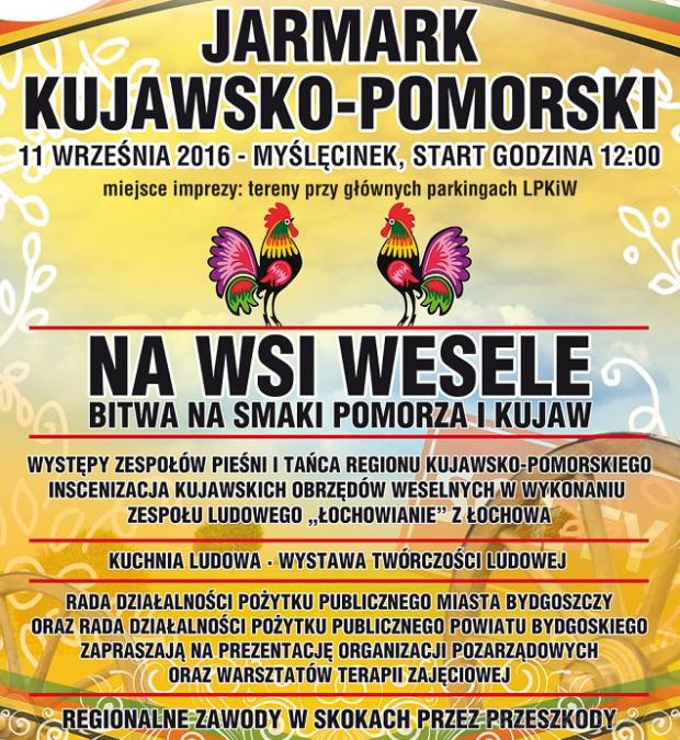 Organizatorzy Jarmarku Kujawsko-Pomorskiego zapowiadają liczbę atrakcji, jakiej dotąd nie było. Jedną z nich, obok inscenizacji wesela kujawskiego w wykonaniu Zespołu Ludowego ?Łochowianie?, będzie bitwa smaków pomiędzy Kujawami a Pomorzem. Kujawy reprezentować mają koła gospodyń wiejskich z: Białowieży, Legbądu, Kiełpina, Wielkiej Komorzy i Tucholi. Pomorze reprezentują: Węglikowice, Mały Klincz, Nowy Klincz, Kłobuczyno, Loryniec.