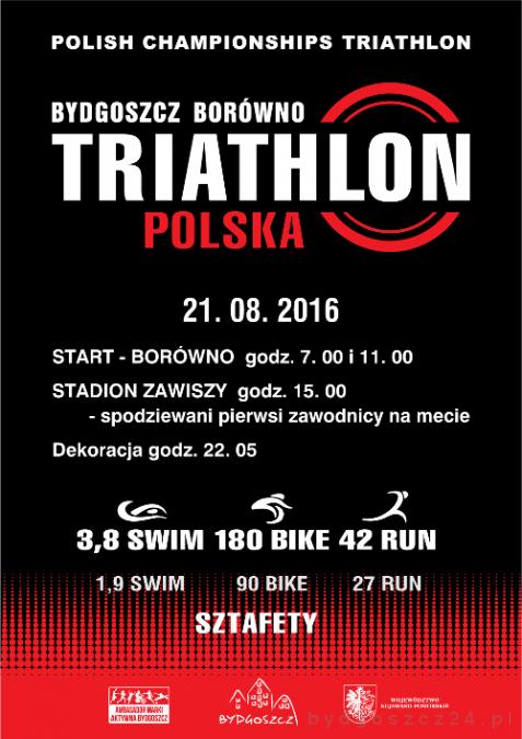 Blisko 600 zawodników wystartuje w niedzielę, 21 sierpnia, w Triathlon Polska. Ta olimpijska dyscyplina sportowa będąca kombinacją pływania, kolarstwa i biegania przeprowadzona zostanie między Bydgoszczą a Borównem. Zawody odbędą się na dwóch dystansach: pełnym liczącym 140,6 km (3,8 km pływania, 180 km jazdy rowerem i 42,2 km biegu). Drugi dystans jest o połowę krótszy (1,9 km pływania, 90 km jazdy na rowerze i 21,1 km biegu). Zawodnicy będą rywalizować indywidualnie i w sztafetach. Organizatorzy spodziewają się na starcie blisko 600 zawodników.