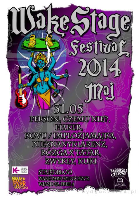 Wake Stage Festival 2014 opanują bydgoskie zespoły. Od godziny 20 zagrają: Arytmia, Fain, Rain of Claims. Miasto po koncercie zapewni uczestnikom imprezy bezpieczne dotarcie do domu. W festiwalową noc, około północy, na myślęciński przystanek przy zoo zostaną podstawione cztery autobusy (dwa linii nr 52 – kierunek Błonie, jeden linii 65 – kierunek Mariampol, jeden linii 68 – kierunek Glinki).