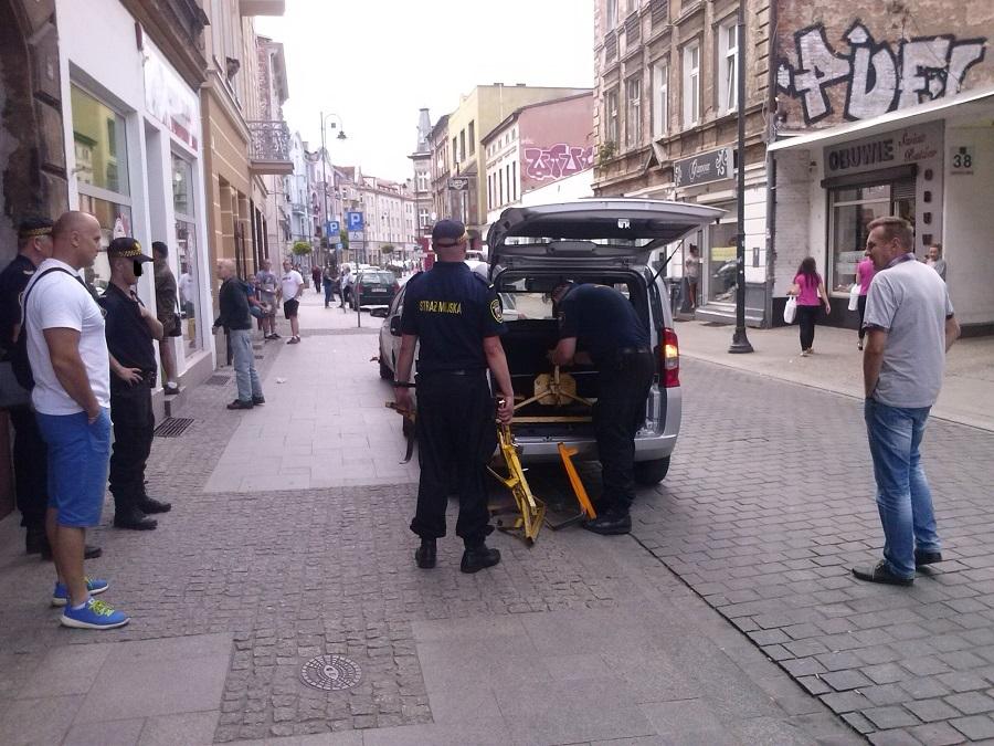 Terenem gigantycznej awantury była dzisiaj ulica Dworcowa. Mieszkańcy i kupcy kibicowali policjantom, którzy zostali wezwani, by powstrzymać działania strażników miejskich. Zdaniem municypalnych, kierowcy nielegalnie parkowali na odcinku między Warmińskiego a Marcinkowskiego, gdyż znaki drogowe informują, że w tym miejscy mogą stać jedynie auta niepełnosprawnych bądź wozy dostawcze.