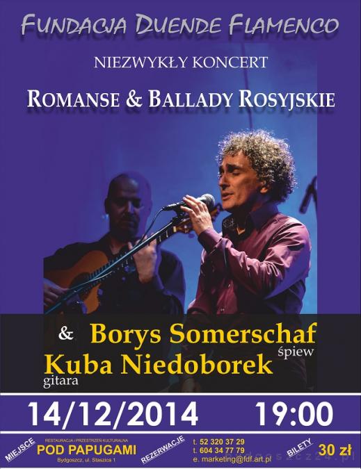 Romanse rosyjskie Borys Somerschaf ma w duszy. Pochodzi z Moskwy i tam właśnie, zanim przyjechał do Warszawy, studiował w Konserwatorium im. Piotra Czajkowskiego. Ukończył też studia w Akademii Muzycznej im. F. Chopina w Warszawie jako stypendysta Rządu RP. W warszawie mieszka od ponad 20 lat. Jak sam podkreśla ? romanse towarzyszą mu przez całe życie, przypominają dzieciństwo i przede wszystkim ojca, który śpiewał je, akompaniując sobie na starej siedmiostrunowej gitarze. Dlatego romanse, nawet te stworzone w XIX wieku, dla Borysa Somerschafa to rodzaj jego osobistej, prywatnej księgi losu, w której zapisane zostały jego przeżycia, radości i smutki. Somerschaf opowiada o tym na koncertach bez kokieterii, skromnie, delikatnie i zarazem autentycznie tak bardzo, że doprawdy oczarowuje i wzrusza swą publiczność.