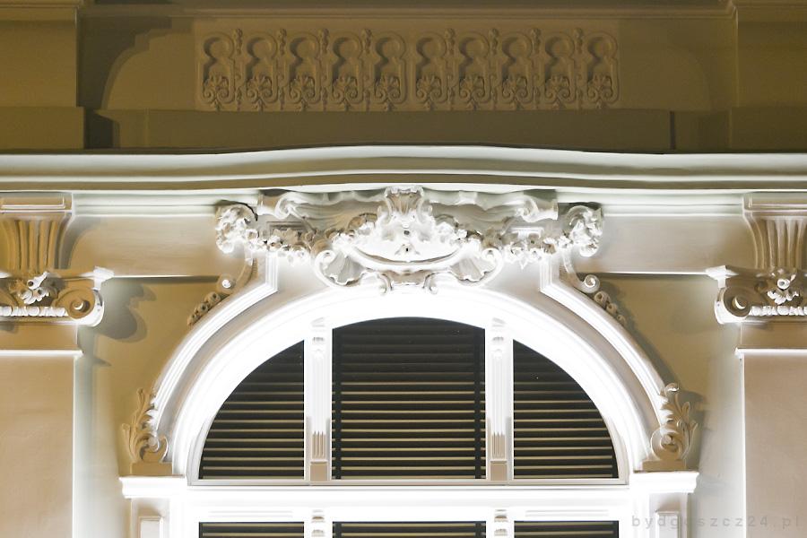 Na dodatek zainstalowane zostało oświetlenie, dzięki któremu nawet w nocy widać bogaty wystrój architektoniczny. Była to pierwsza, trzeba przyznać bardzo udana, realizacja architekta Fritza Weidnera, przybyłego do Bydgoszczy z Berlina pod koniec XIX wieku.