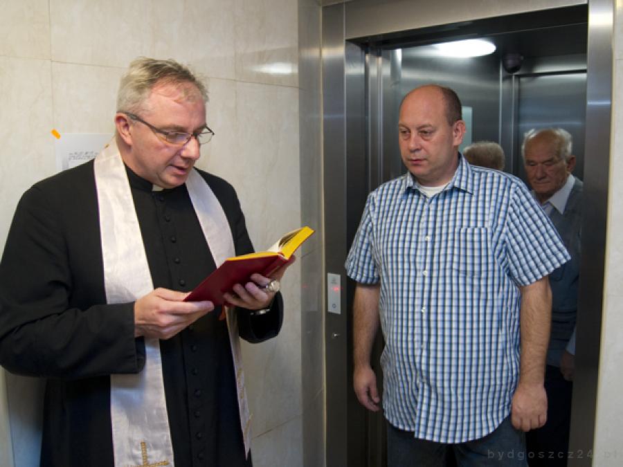 Nowa winda porusza się z prędkością 1 m na sekundę. Poświęcił ją dzisiaj ks. Tadeusz Ristau, proboszcz parafii Zmartwychwstania Pańskiego.