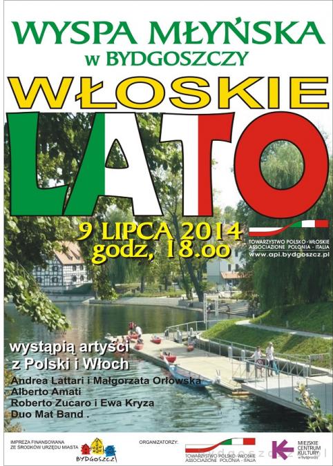W koncercie “Włoskiego Lata” wystąpią artyści polscy i włoscy. Zaśpiewają Roberto Zucaro z Ewą Kryzą, Andrea Lattari z Małgorzatą Orłowską i Alberto Amati oraz polski zespół Duo Mat Band Danuta i Marek Lewiccy.