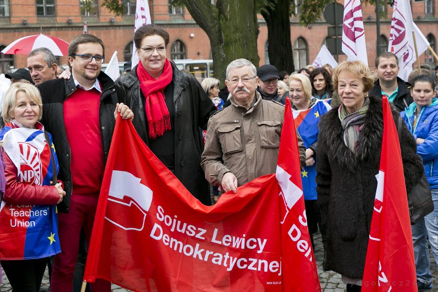 Działacze SLD uczestniczyli w manifestacji ZNP przed Urzędem Wojewódzkim. Działacze z górnej półki też się tam znaleźli. Anna Mackiewicz jest jednym z jedenastu zastępców Włodzimierza Czarzastego, czyli krajową wiceprzewodniczącą SLD. Ireneusz Nitkiewicz został natomiast w tym roku jedynym przewodniczącym SLD w województwie kujawsko-pomorskim.