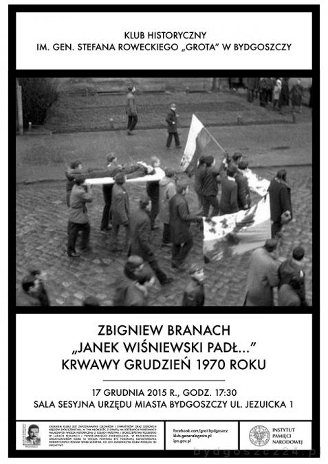 W sali sesyjnej bydgoskiego ratusza przy ul. Jezuickiej 1 w czwartek, 17 grudnia, o godz. 17.30 Zbigniew Branach podczas spotkania zatytułowanego “Janek Wiśniewski padł…” opowie o krwawych wydarzeniach grudnia 1970 roku na Wybrzeżu.