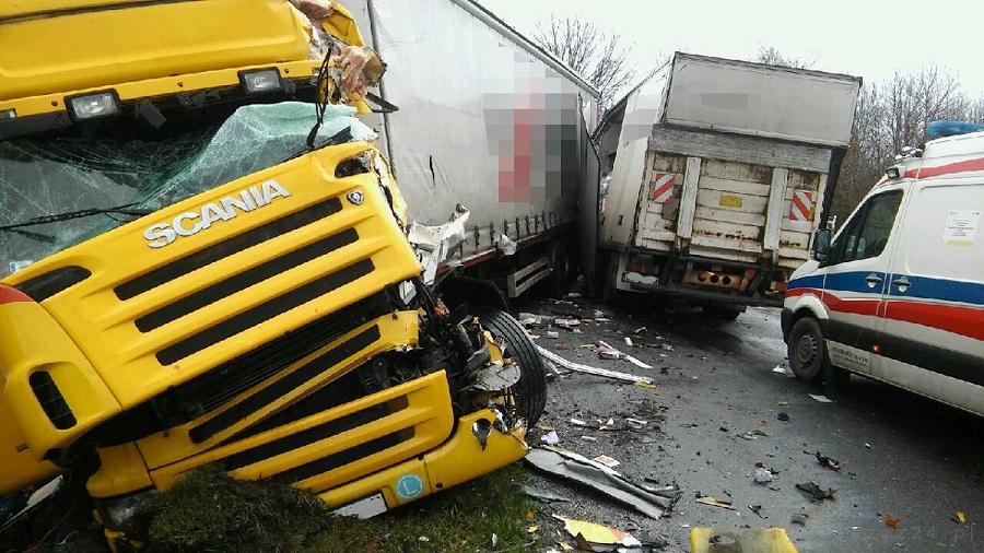 Dziś (19.11.2015) około godziny 9:00 w Zalesiu na trasie Sępólno Krajeńskie ? Tuchola zderzyły się dwie wielkie ciężarówki.