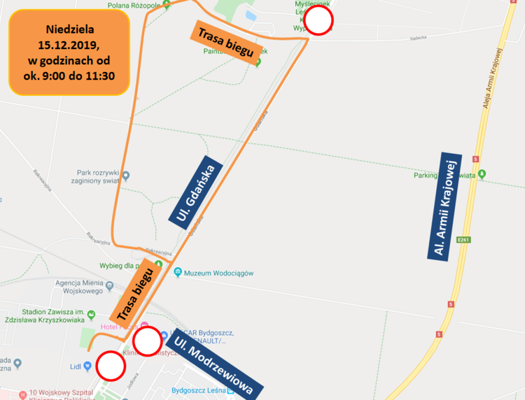 W niedzielę (15 grudnia) w związku z organizacją biegu "Zimowa Zadymka" wprowadzone zostaną zmiany w funkcjonowaniu komunikacji miejskiej na Leśnym i w Myślęcinku. Nieprzejezdna będzie m.in. ulica Gdańska. Linie autobusowe nr 52, 93 i 94 pojadą al. Armii Krajowej. Tramwaje linii nr 1 i 10 kierowane będą na Bielawy, natomiast linii nr 2 na Rycerską.