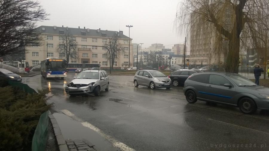 W nocy nadciągnął niż. Wcześnie rano utrzymywał się jeszcze przy ziemi niewielki mróz i na ulicach Bydgoszczy było bardzo ślisko. W takich warunkach łatwo było o poślizg przy najmniejszym naciśnięciu na hamulec. Nasz fotoreporter drobnych kolizji w Fordonie odnotował kilka.