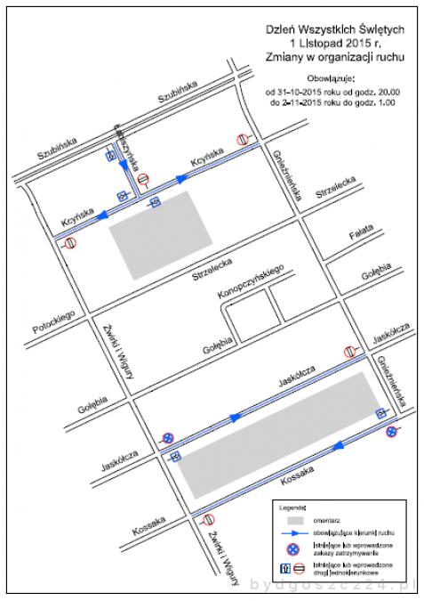 Zarząd Dróg Miejskich i Komunikacji Publicznej informuje o zmianach, jakie nastąpią w organizacji ruchu przy bydgoskich cmentarzach: