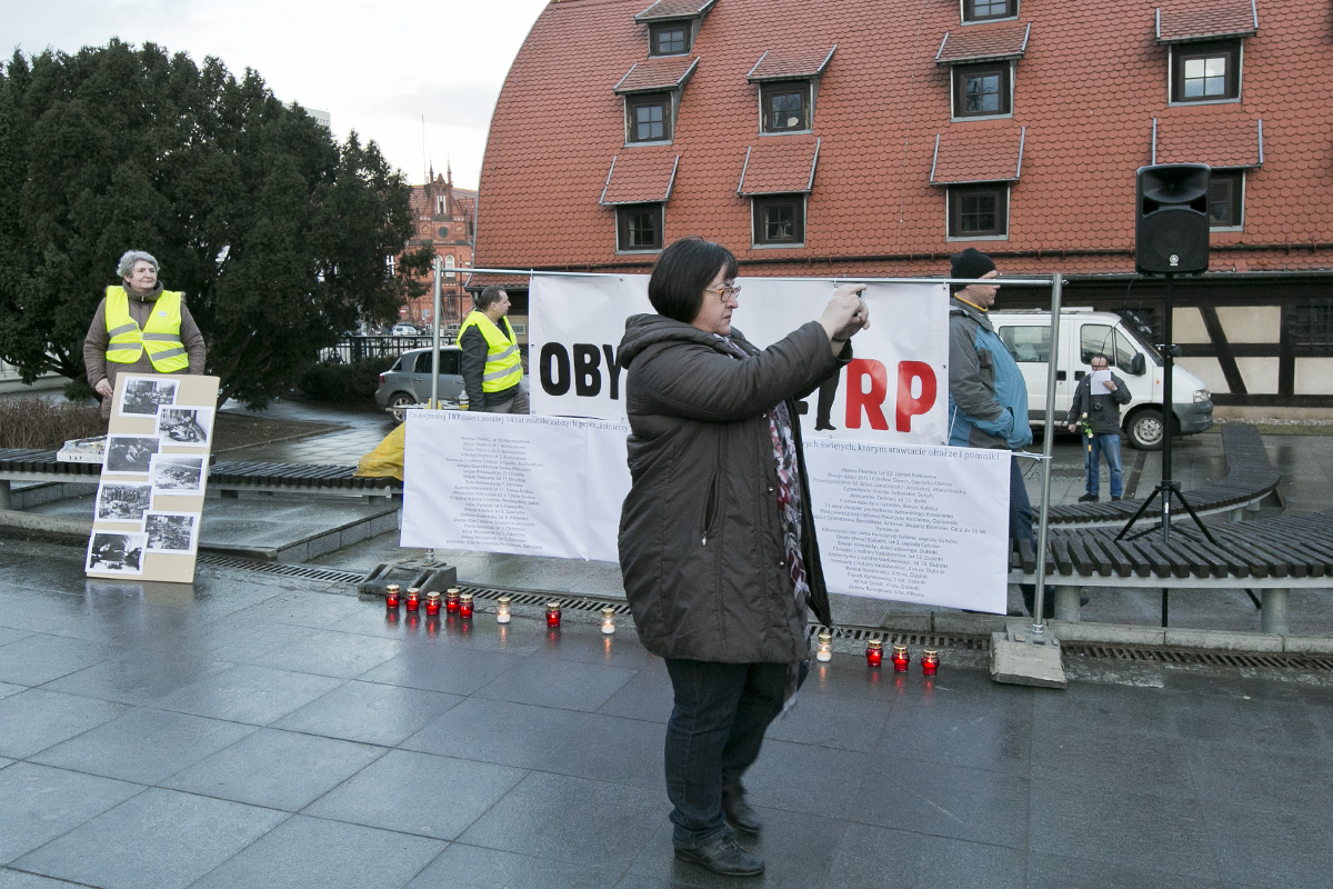 W tym samym czasie w pobliskim amfiteatrze przy Spichrzach przy ul. Mostowej Obywatele RP w Bydgoszczy zorganizowali pikietę. "Historia żołnierzy wyklętych to trudna i bolesna karta okresu powojennego. Nie możemy zamykać oczu, że byli niezłomni, ale również wyklęci, przeklęci" - przemawiał jeden z organizatorów, dowodząc, że w szeregach niezłomnych byli też "bandyci". Podczas pikiety z głośników nadawane były pieśni z repertuaru patriotycznego, solidarnościowego, a nawet patriotyczno-religijnego ("Ojczyzno ma").