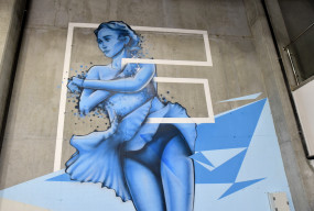 Na Torbydzie kończą się prace przy muralu, który powstaje na wewnętrznych ścianach lodowiska.