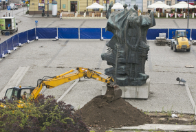 Na Stary Rynek wjechał ciężki sprzęt i pojawiły się ekipy budowlane. Koparka wykopała dziurę w miejscu, na które przesunięty zostanie pomnik Walki i Męczeństwa.