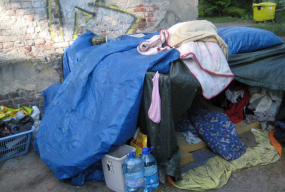 Bezdomni bezrobotni koczują w centrum Bydgoszczy