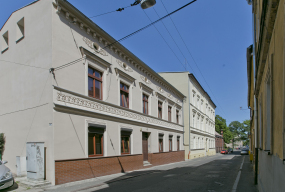 Kordeckiego. Mury z czerwonej cegły i jasne elewacje