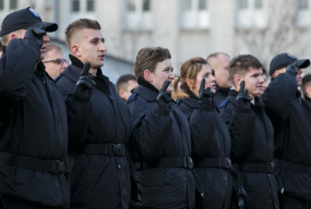 Na dziedzińcu Oddziału Prewencji Policji w Bydgoszczy przy ul. Poniatowskiego odbyło się dzisiaj ślubowanie 117 nowych policjantów, którzy zostali przyjęci do służby pod koniec grudnia 2017 r.