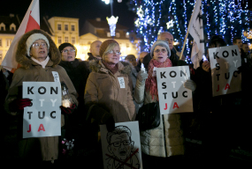 Ponad 100 osób manifestowało dzisiaj na Starym Rynku na wezwanie stowarzyszeń i organizacji opozycyjnych w 36. rocznicę wprowadzenia stanu wojennego.