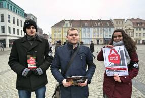 Na Starym Rynku młodzi wszechpolacy przeprowadzili dzisiaj akcję promującą kupowanie polskich produktów.
