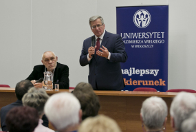 Były prezydent RP Bronisław Komorowski zakończył wizytę w Bydgoszczy z przedstawicielami Uniwersytetów III Wieku w Bibliotece Uniwersytetu Kazimierza Wielkiego. Na spotkanie przyszli również jego polityczni zwolennicy, którzy angażowali się w jego kampanię w wyborach prezydenckich.