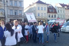 Ponad 200 młodych lekarzy protestowało dzisiaj na Starym Rynku. Domagają się podniesienia nakładów na służbę zdrowia i wzrostu wynagrodzeń.