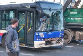 Do groźnego wypadku doszło dzisiaj rano na ulicy Bernardyńskiej. Autobus linii nr 58 uderzył w ciężarówkę, a ta wjechała jeszcze w samochód osobowy.