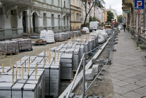 Remont Cieszkowskiego na półmetku. Układane są już czerwonawe granitowe kostki