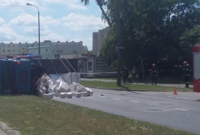 Na Pelplińskiej przewróciła się ciężarówka z pustakami. Były problemy z komunikacj