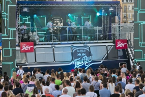 Wielu młodych i bardzo młodych bydgoszczan przybyło dziś wieczorem na Wyspę Młyńską, by posłuchać koncertu z dachu muzycznego autobusu.