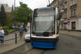 Do zaskakującej kolizji doszło na ul. Dworcowej. Tramwaj przycisnął jadący samochód osobowy do krawężnika.